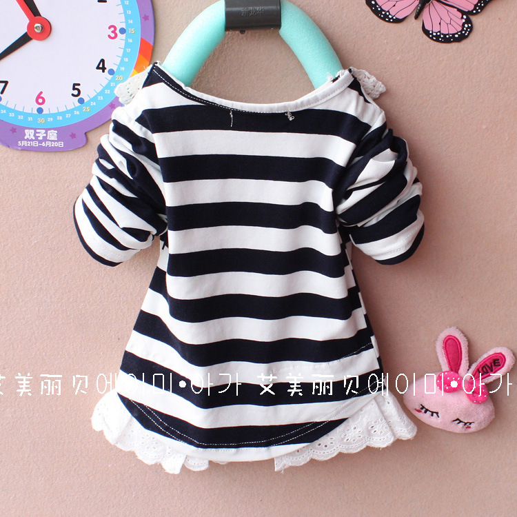2013春装上新 品牌童装 韩版男女童条纹花边领T恤 syl1302 1-3岁