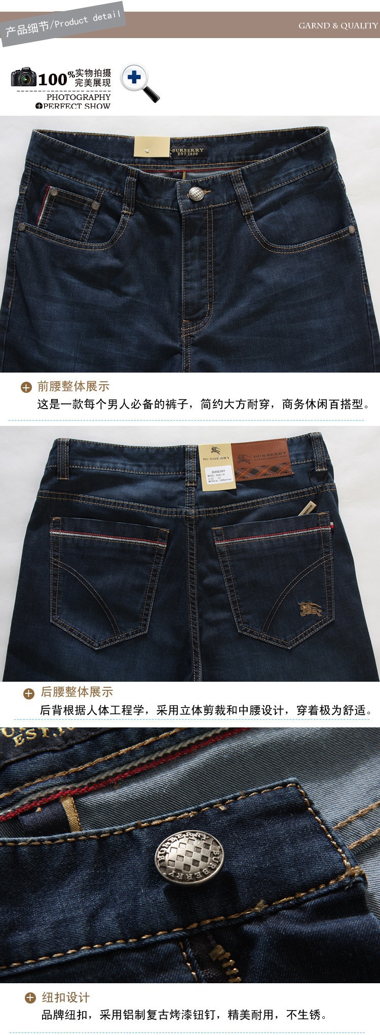 春夏薄款 巴宝莉男装正品男士牛仔裤韩版潮男裤中腰直筒牛仔长裤