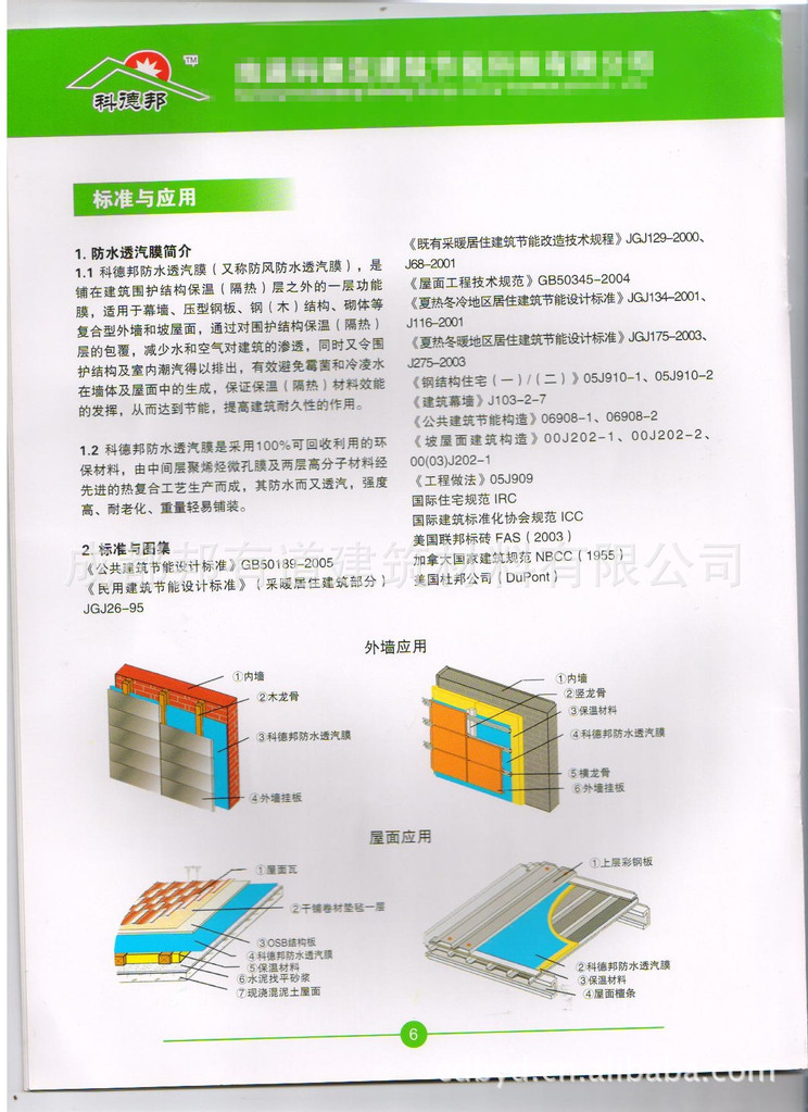 真正的防水透气膜不是用胶水复合的,所以耐温度是-40,100度(欧盟CE标准,美国ASTM标准)。也不是用聚乙烯或者TPO淋膜生产的,所以透气量应当超过1500g/平方/24小时,用聚乙烯或者TPO淋膜生产那基本上就不透气。静水压检测,薄型的防水透气膜的静水压至少在1.5米以上,厚的防水透气膜至少在2米以上。抗老化是必须的,因为PP材料在紫外线下是容易老化的,有的假冒的防水透气膜是用很差的回收料生产的,这个防水透气膜在施工过程中很容易就老化降解。