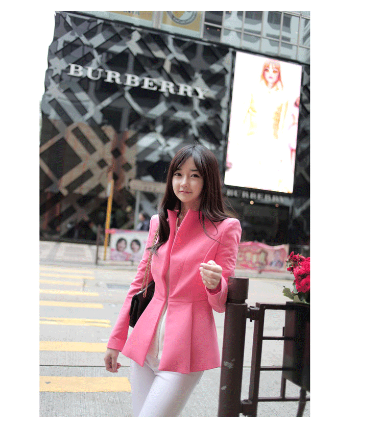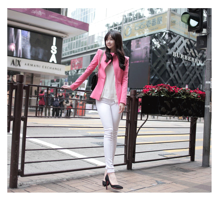 款就是本款,修身立体剪 裁的小西装,它的剪裁完全符合身体曲线,即使敞开穿都会显得纤巧。干练不拖沓。本款还有个亮点就是它的颜色,春天用亮丽的