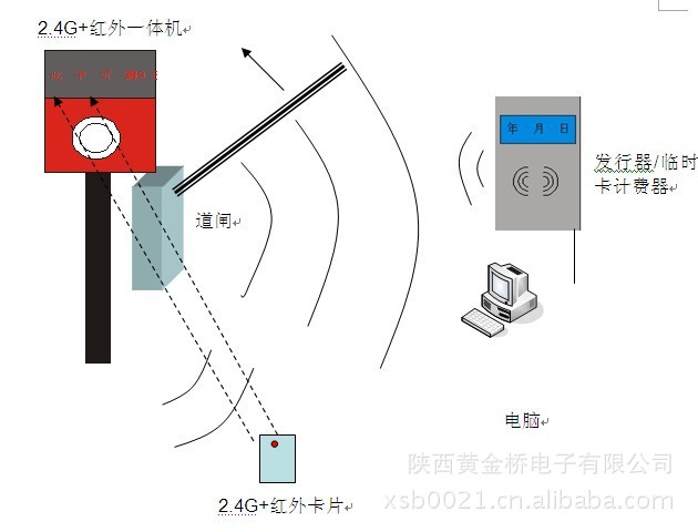 设备:2.4G+红外一体机,临时卡计费器,电脑,道闸,卡片