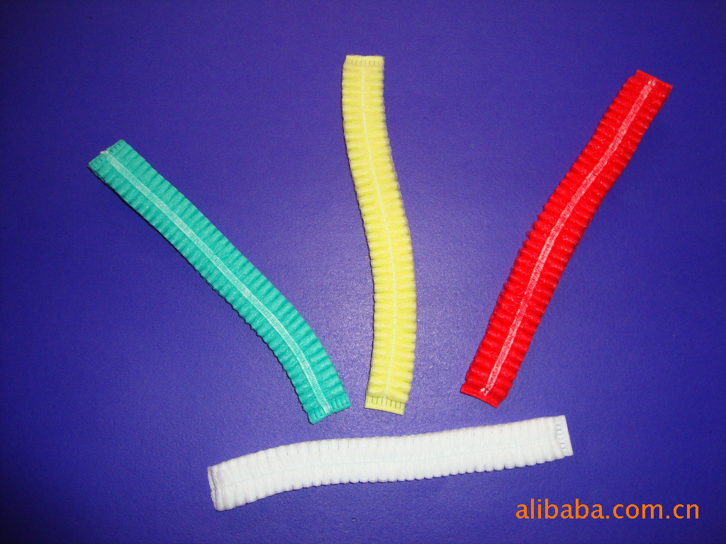 产品规格:有18英寸到21英寸,有单筋和双筋,有蓝、白、红、黄等色、长度和克数可定做,帽体轻便,封口的松紧带可以使佩戴者舒适、紧凑不会脱落、柔软适合各种头型,包装为内塑料袋外纸箱。每袋100只,每箱2000只装