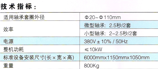 全自动的运行模式,主要完成轴承的上料、退磁、超声波喷淋粗清洗、喷淋精清洗、整列、离心脱油、出料等轴承装配工序,配置齐全。