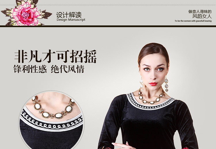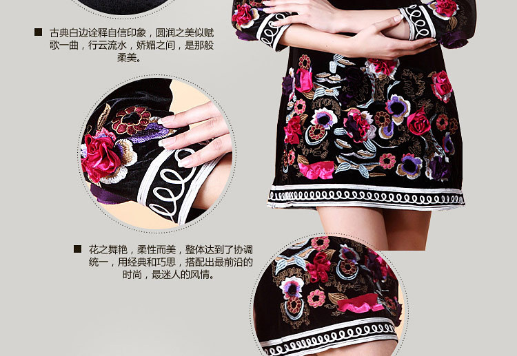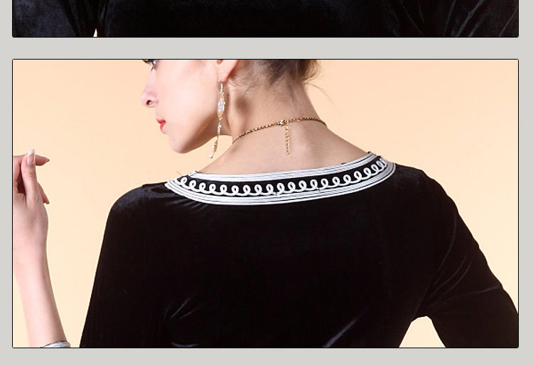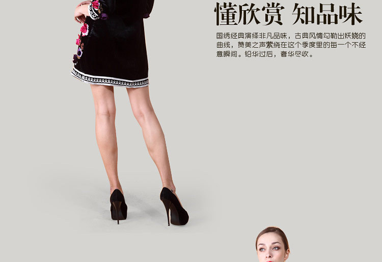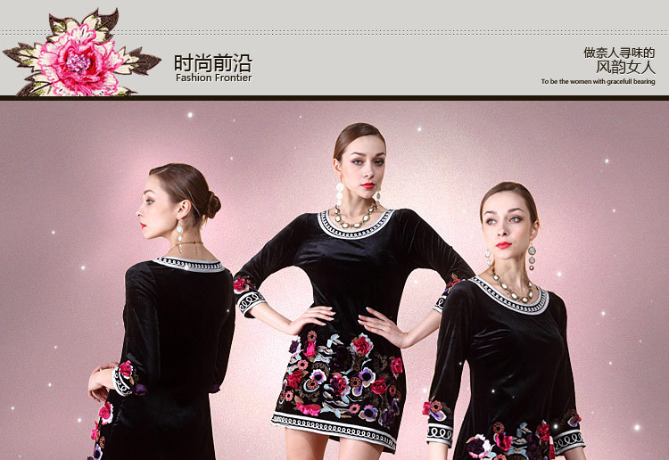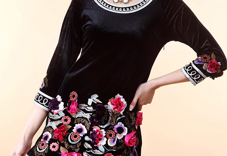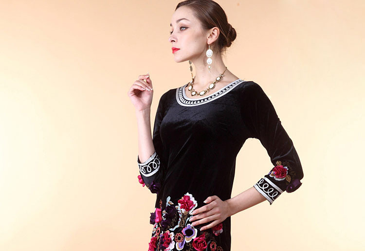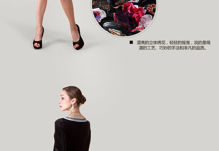 2201#冬装新款连衣裙打底刺绣花长袖大码女装修身金丝绒韩版
