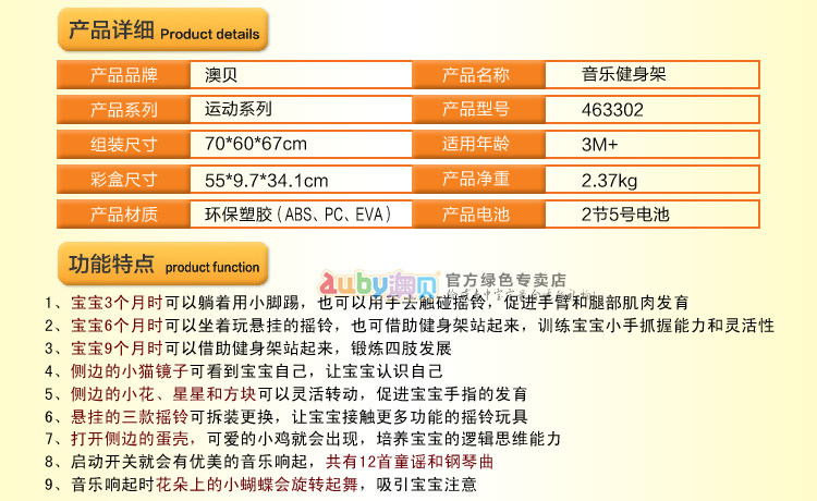 正品澳贝音乐健身架婴儿玩具463302 儿童礼物