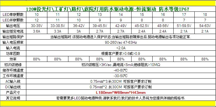 2、输出:30-36V 3600MA ±3%(可按客人要求调整);