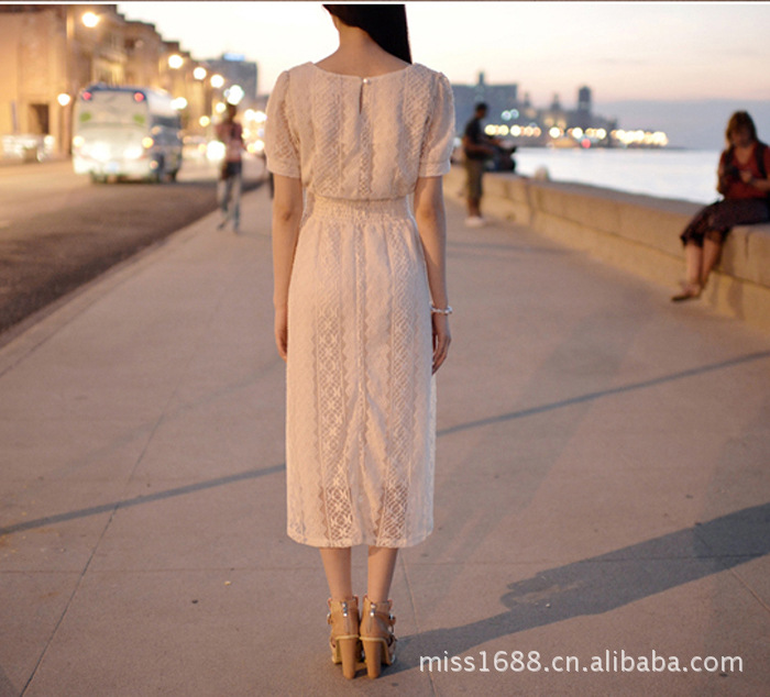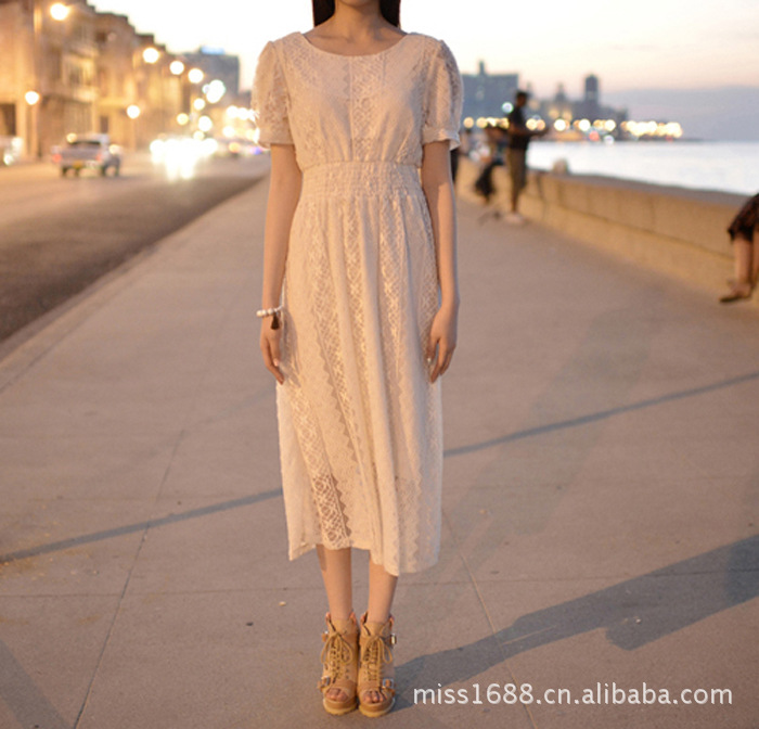 商品描述:夏装新款清新森女 圆领收腰显瘦短袖长款全蕾丝连衣裙,简约圆领,优雅大气~袖口的封边处理,充满优雅气息~,简洁圆领设计,勾勒你完美的颈部曲线,腰部收腰版型,很显瘦的哦,秀出你完美身姿~褶皱长摆,迎风摇曳,很仙的哦~蕾丝面料女性优雅甜美的象征,让你幸福快乐每一天~!