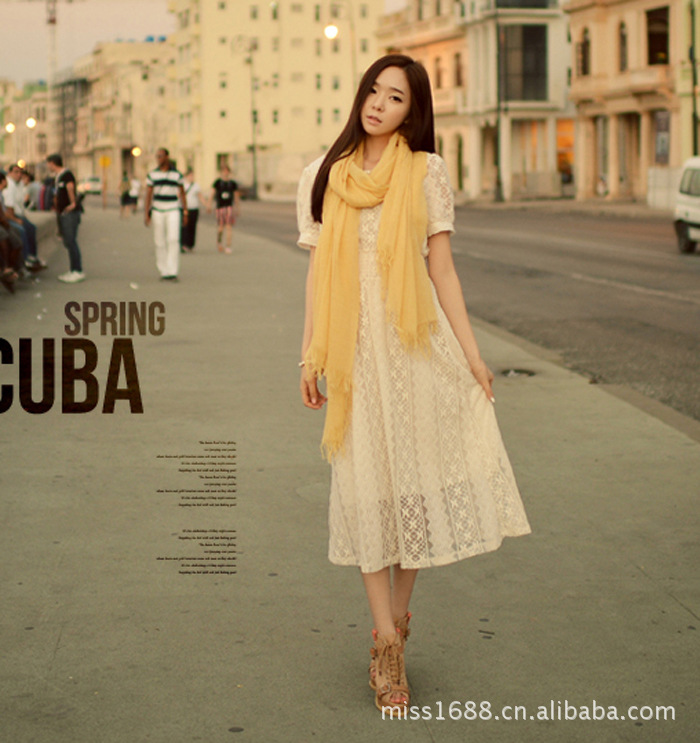 2013夏装20953新款清新森女圆领收腰显瘦短袖长款全蕾丝连衣裙