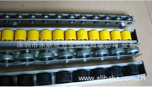 滚道(也称滑道、流利条),主要是由铝合金滚道架、ABS滚轮。