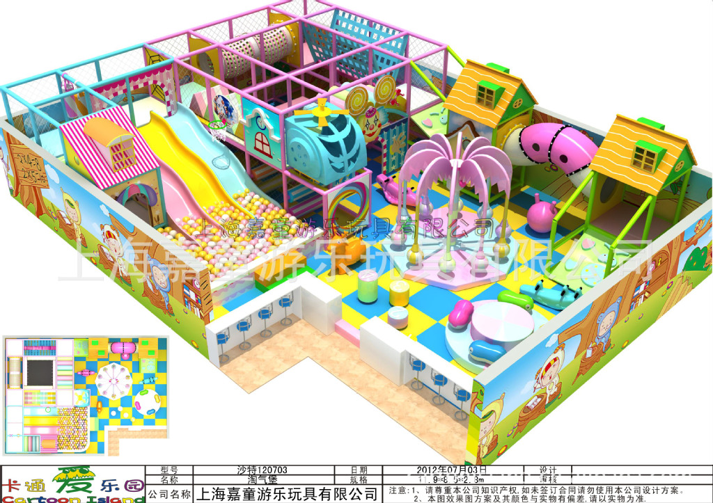 1.淘气堡具体要根据场地设计方案,要需求方提供场地平面图(尽可能的提供详细的尺寸,包括场地长宽高、场地中有没柱子,如果有的话得有柱子大小、柱子到旁边的距离,还有就是从哪个位置进出儿童乐园,周围有无消防栓等等这些数据得在平面图上标明)