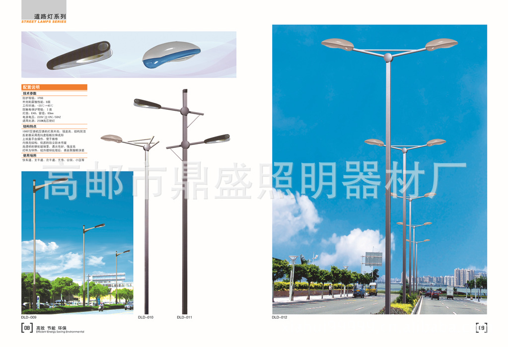 | 高邮市鼎盛照明器材厂是道路照明灯、高杆灯、大跨度信号灯、太阳能路灯、LED路灯、广告牌、路灯杆、景观灯等产品专业生产加工的公司,拥有完整、科学的质量管理体系。高邮市鼎盛照明器材厂的诚信、实力和产品质量获得业界的认可。欢迎各界朋友莅临参观、指导和业务洽谈。 |