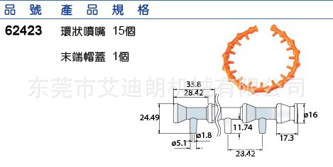 五種口徑有五種內徑:1/4", 3/8", 1/2", 3/4", 2 1/2"。