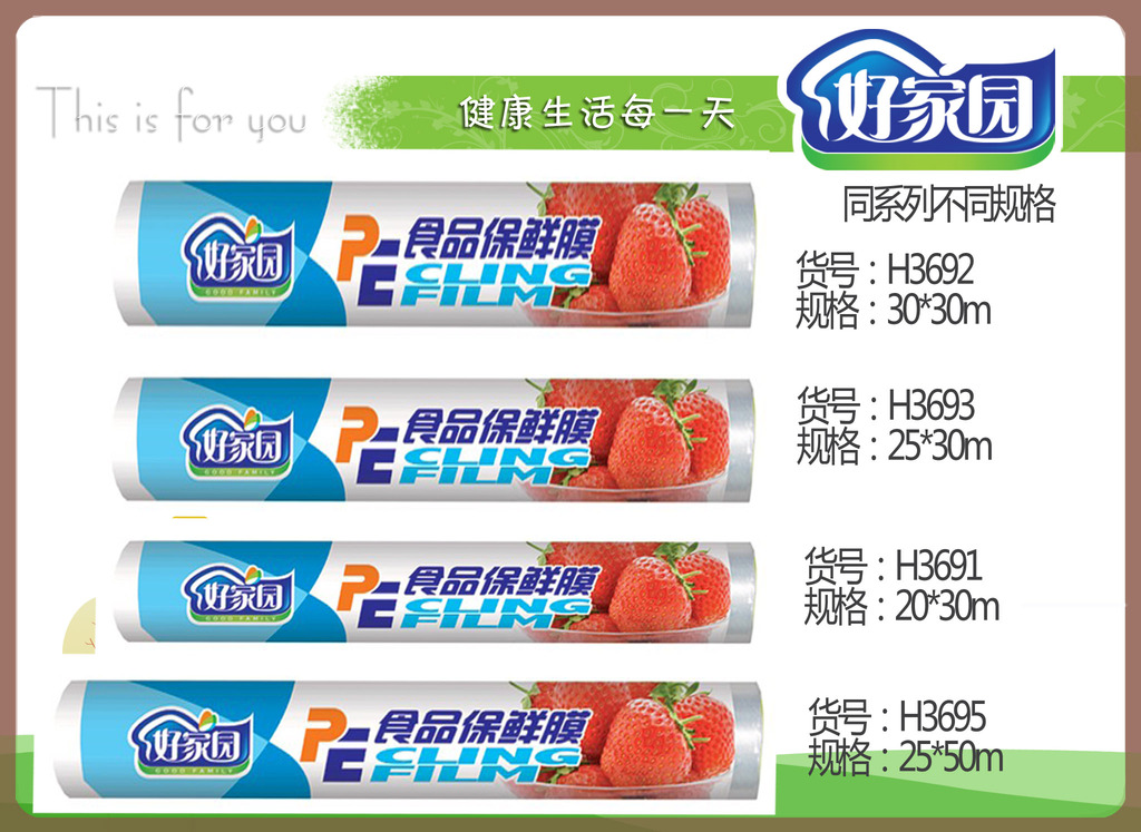 好家园 PE保鲜膜H3691-95 食品保鲜膜 可贴牌 可加工