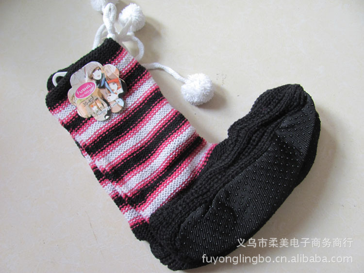 2013新款厂家直销提花针织女式成人加底加厚长筒防滑地板袜 袜套