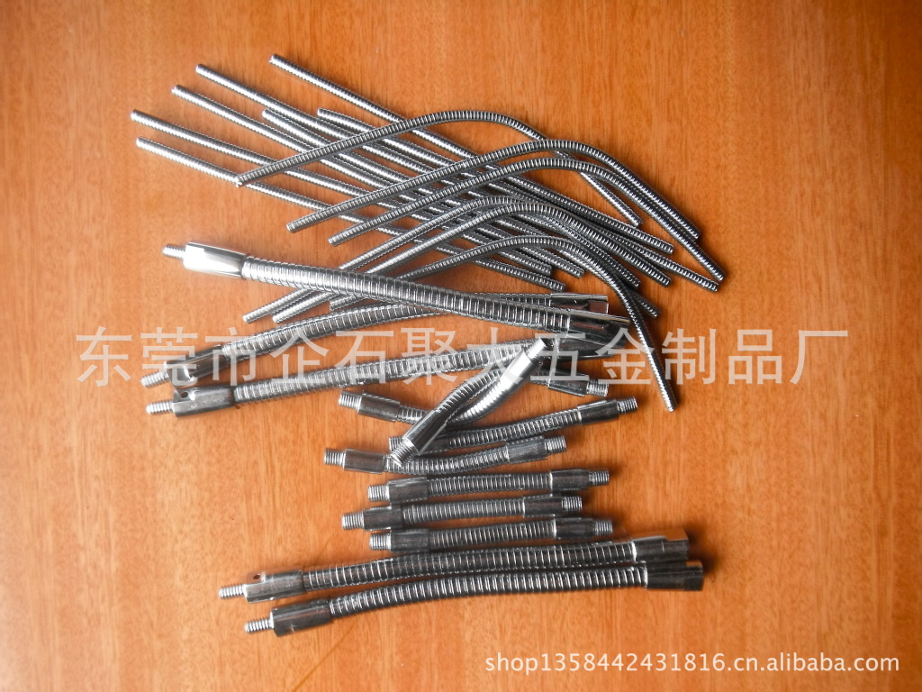 东莞市聚大金属定型软管制品厂(金属鹅颈软管专业生产商)是国内较早从事鹅颈软管机械及产品开发、生产、销售为一体的实力工厂,向社会各界提供生产各种型号金属软管,现与国内外众多著名厂商合作,获得众多客户好评,并引领了软管技术改进的步伐,是金属软管行业的佼佼企业,目前已拥有国内外众多客户,多次与世界知名公司(如夏普)合作生产各种软管,产品深受广大厂家客户的好评。能生产鹅颈软管、蛇管、灯饰软管、麦克风(话筒)金属软管、灯具金属软管、台灯金属软管、USB金属软管、弹簧软管、金属定型软管、点火枪金属软管、车载导航系列软管、iphone4、5系列软管等。软管尺寸在2.0mm—20mm范围内都可制作。也能进行软管类产品深加工,如台座开关、usb啤头、usb充电器、耳机线圈等。