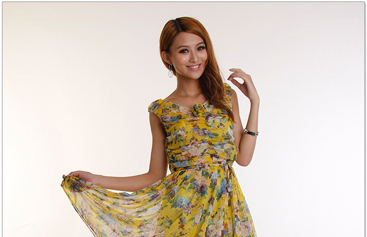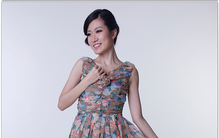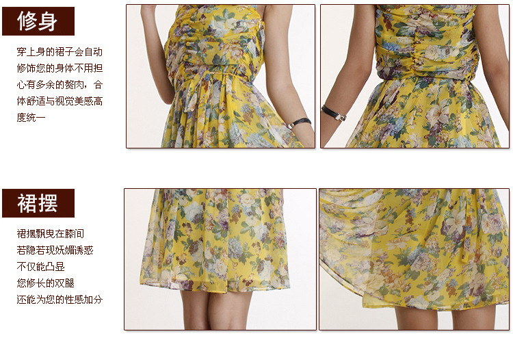 2539#品牌韩版女装夏款公主裙 甜美田园风格套头圆领雪纺连衣裙