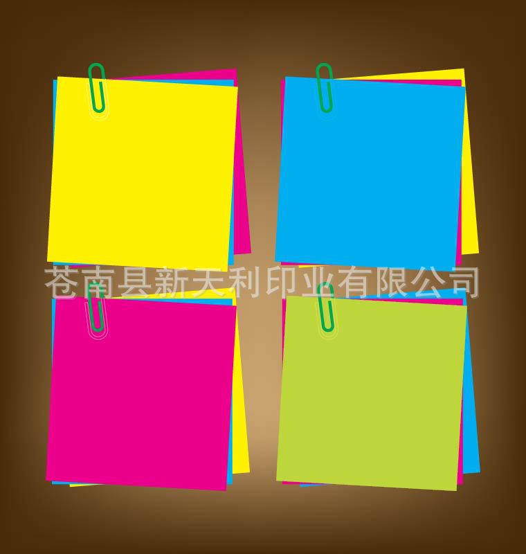 【产品材质】 内页是50张80克白色双胶纸 【规格尺寸】 10cm*7.2cm 【生产工艺】 内页4色印刷,背后带胶. 【颜色图案】 只提供定制,客户需要提供图案源文件。【价格说明】 不含税出厂价,单独OPP袋包装 【产品特点】 简洁、带公司广告信息【产品用途】 公司赠品、展会赠品