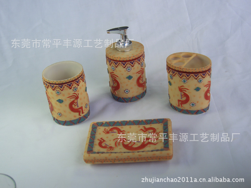 【产品介绍】树脂卫浴系列产品,大致分为卫浴四件套,卫浴五件套和卫浴六件套,卫浴七件套,客人可以根据自身的需求自由选择搭配!产品主要销往日本,韩国,中东,欧美等国家,近年来也越来越受国内广大消费者的青睐。原材料采用进口环保树脂,耐磨损,防潮、耐化学腐蚀,合理的配方使之耐紫外线、不黄变,不褪色,非常环保。产品上面都是立体的手绘雕花,美得让人爱不释手!