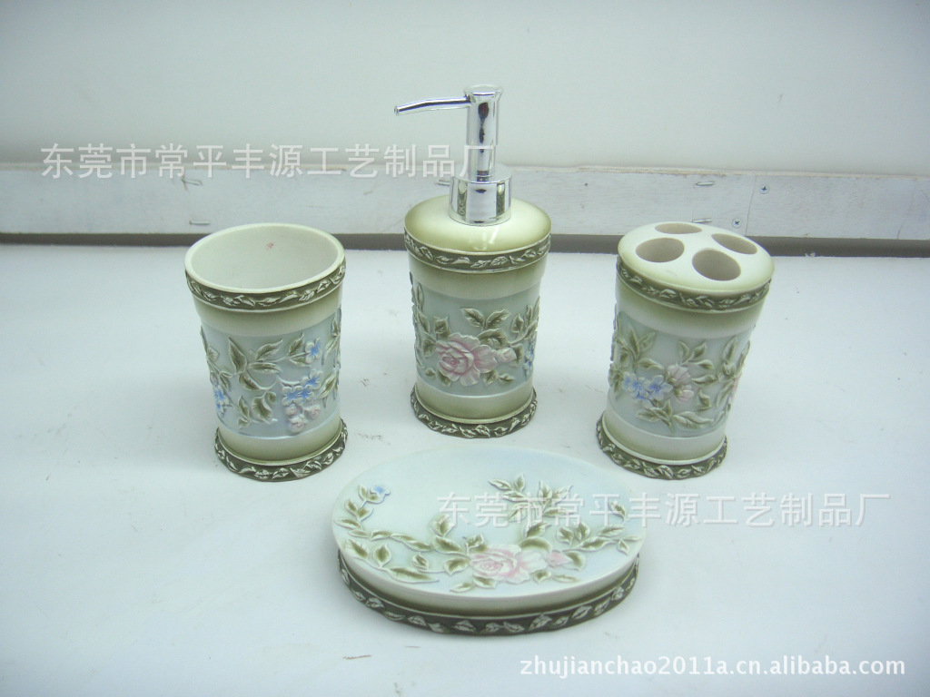 【产品介绍】树脂卫浴系列产品,大致分为卫浴四件套,卫浴五件套和卫浴六件套,卫浴七件套,客人可以根据自身的需求自由选择搭配!产品主要销往日本,韩国,中东,欧美等国家,近年来也越来越受国内广大消费者的青睐。原材料采用进口环保树脂,耐磨损,防潮、耐化学腐蚀,合理的配方使之耐紫外线、不黄变,不褪色,非常环保。产品上面都是立体的手绘雕花,美得让人爱不释手!