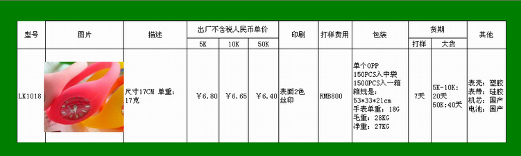 【产品材质】表带:硅胶,机芯/电池:国产