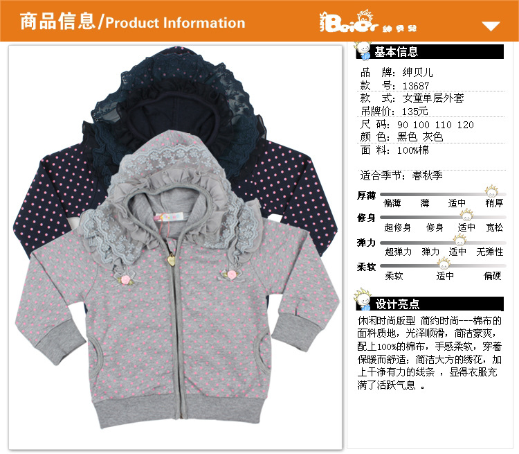 绅贝儿童装女童 春秋装2013女童圆点单屋外套韩版儿童新款13687