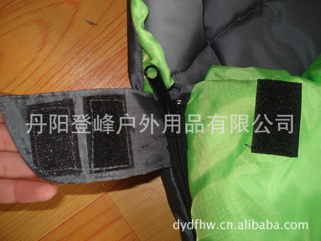 睡袋实物细节:1。睡袋魔术贴为圆弧设计美观大方,2.挡风墙为三层缝纫线定住,睡袋防风3.配有领围护颈