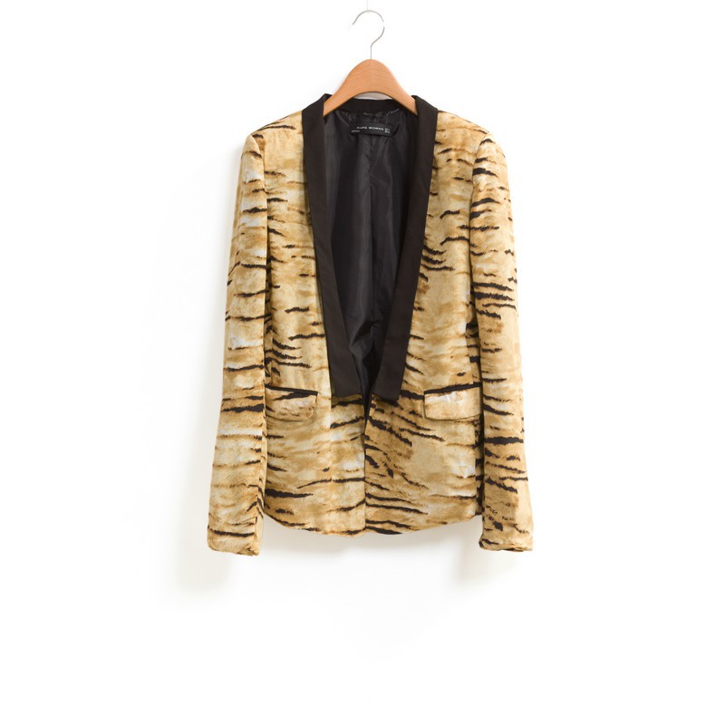 2013专柜同款欧美风春秋爆款虎纹西服一粒扣长袖小西装za