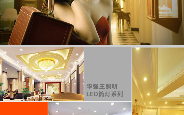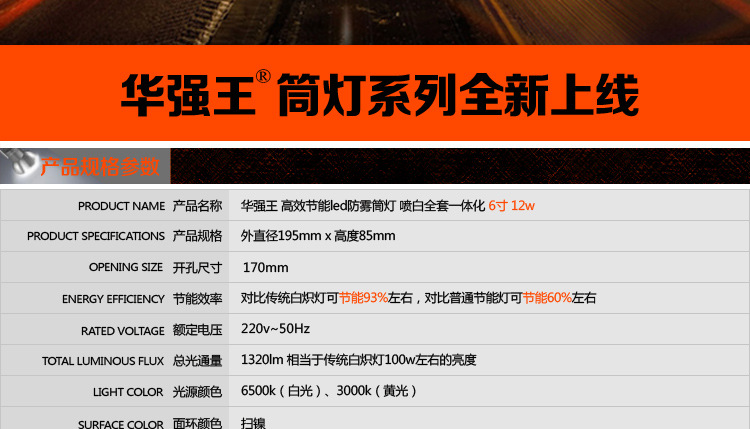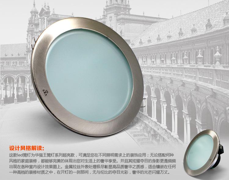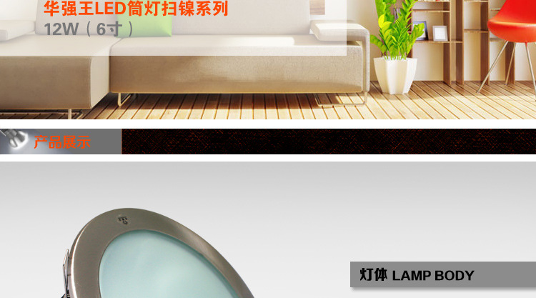 华强王正品 6寸 12W LED防雾筒灯 扫镍全套一体化天花灯浴室厨房
