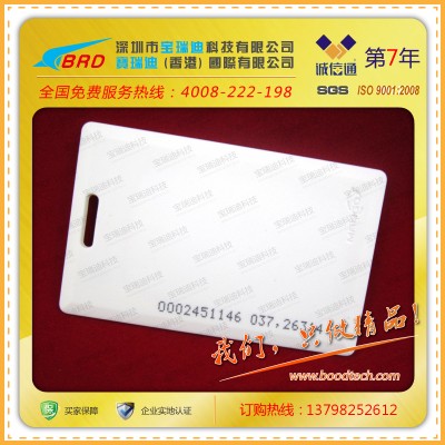 产品详细描述:ID卡全称为身份识别卡(Identification Card),是一种不可写入的感应卡,含固定的编号,主要有台湾SYRIS的EM格式、美国HIDMOTOROLA等各类ID卡。ID卡与磁卡一样,都仅仅使用了“卡的号码”而已,卡内除了卡号外,无任何保密功能,其“卡号”是公开、裸露的。所以说ID卡就是“感应式磁卡”。 ISO标准ID卡的规格为:85.6x54x0.80±0.04mm(高/宽/厚),市场上也存在一些厚、薄卡或异型卡。