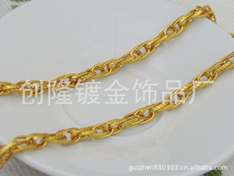 所有镀金产品全部自产自销 产品品种丰富齐全,其中男式仿黄金项链款式有50多个,女士仿黄金项链款式有30多个,男士仿白金项链款式有50个,女士仿白金项链款式有30个。另外男士戒指有多个款式和字体,女士戒指有10来个款式,200多个花型,项链挂坠分为仿黄金和仿白金、锆石以及马来玉四种,有300多个款式,以及手链、手镯几大品类,几十个花型等等。另外我们厂家也不定时的推陈出新,不定时推出新的款式和新的花型。