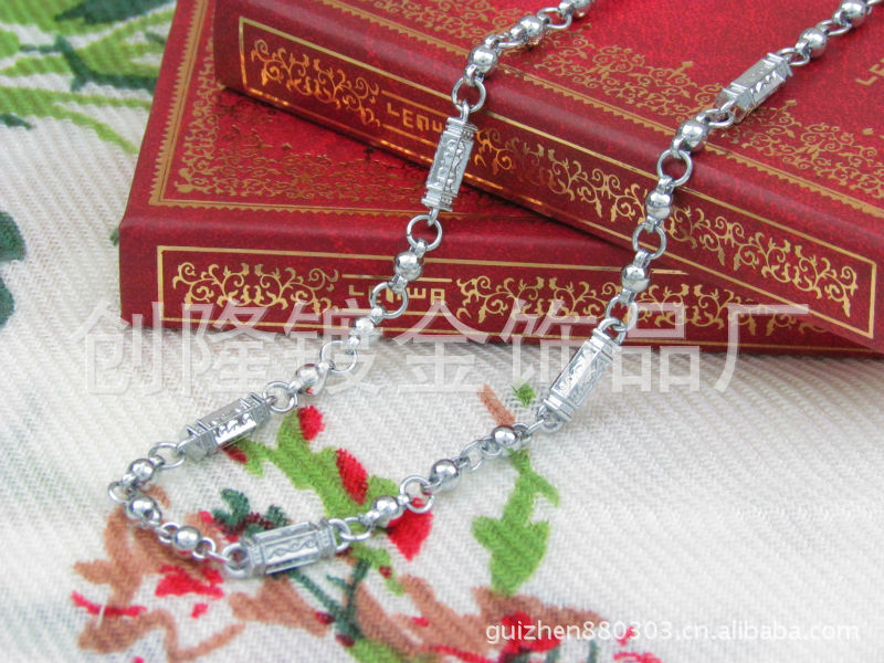 所有镀金产品全部自产自销 产品品种丰富齐全,其中男式仿黄金项链款式有50多个,女士仿黄金项链款式有30多个,男士仿白金项链款式有50个,女士仿白金项链款式有30个。另外男士戒指有多个款式和字体,女士戒指有10来个款式,200多个花型,项链挂坠分为仿黄金和仿白金、锆石以及马来玉四种,有300多个款式,以及手链、手镯几大品类,几十个花型等等。另外我们厂家也不定时的推陈出新,不定时推出新的款式和新的花型。