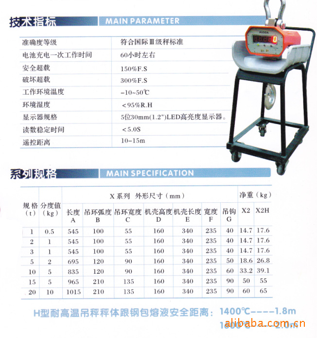 电子吊秤(Electronic hanging scale)是使物体处于悬挂状态进行其质量(重量)计量的电子衡器,称之为电子吊秤。要求使用场合必须有电葫芦,一般用于钢铁厂、卷板厂、炼钢厂、开平煎板厂、桥梁厂、重型机械厂、码头等。