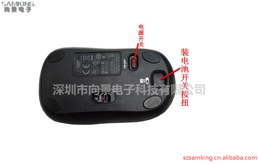 此款无线鼠标采用了左右对称的人体工程学设计,在鼠标的两边分别有磨砂表面作为防滑使用。鼠标的整体手感还不错,宽大的上壳能很好的贴合手型,而且表面细腻的外壳在手感方面也做的不错。这款鼠标的电池舱位于鼠标的尾部,这里面还有为NANO接收器准备的收纳舱,我们平时外出时不需要担心接收器会遗失,只要打开后盖就能很好的收起来。在鼠标的底部,我们看到SK215无线鼠标明显要强于其它品牌,不仅表面平整,而且细节做得也很到位,在字体的印刷方面也非常的清晰。在开始后盖的按钮上面,还为我们标注了接收器和电池的标志,非常人性化。SK215配备的是Nano微型接收器,让广大消费者以更低廉的价格享受到无线产品带来的使用效率和舒适度。