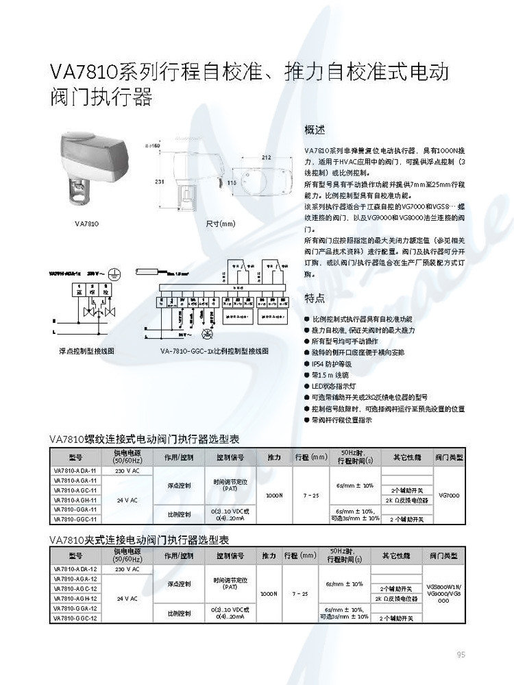 江森 VA7810-GGC-12水阀电动比例控制执行器 含辅助开关