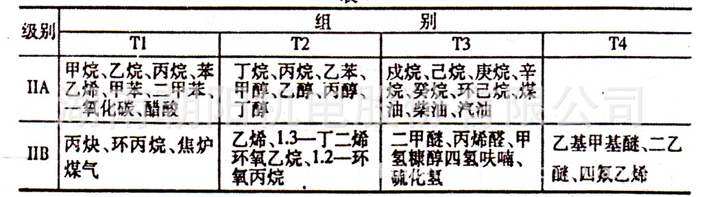使用常用见可燃性气体、蒸气级别、温度组别