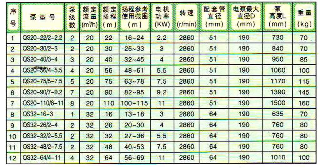 1、QS潜水电泵是一种全扬程水泵,应首先在推荐范围内使