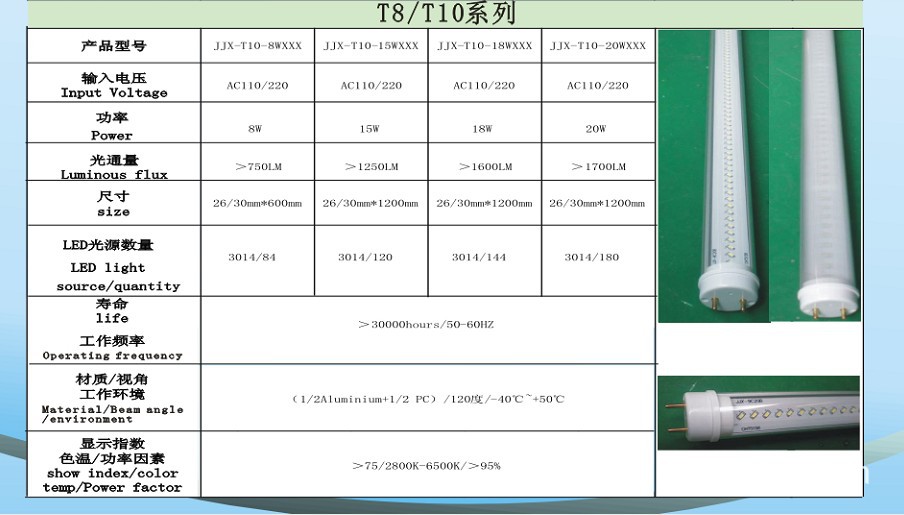 1.环保灯具,保护地球:LED灯具不含水银,铅等有害物质,对环境起到保护的作用,LED日光灯光是公认为二十一世纪的绿色照明。2.高效转换,减少发热:LED灯具是电能全部转换成光能,不会造成能源的浪费,对于文件,衣物也不会产生退色现像。3.清净舒适,没有噪音:LED灯具也不会产生噪音,对于使用精密电子仪器的场合为上佳之选,适合于图书馆,办公室等场合。4.光线柔和,保护眼睛:LED灯具是交流电直接转换为直流电,不会产生闪烁现象,保护眼睛。5.节能电源,寿命更长:LED日光灯的耗电量是传统日光灯的三分之一以下,寿命也是传统日光灯的十倍,可以长期使用而无需更换,减少人工费用,更适合于难于更换的场合。6.坚固牢靠,长久使用:LED灯体使用的是PC,坚固牢靠,即使砸在地板上也不会轻易损坏,可以放心的使用 以上图片报告是通过CE和ROHS认证;