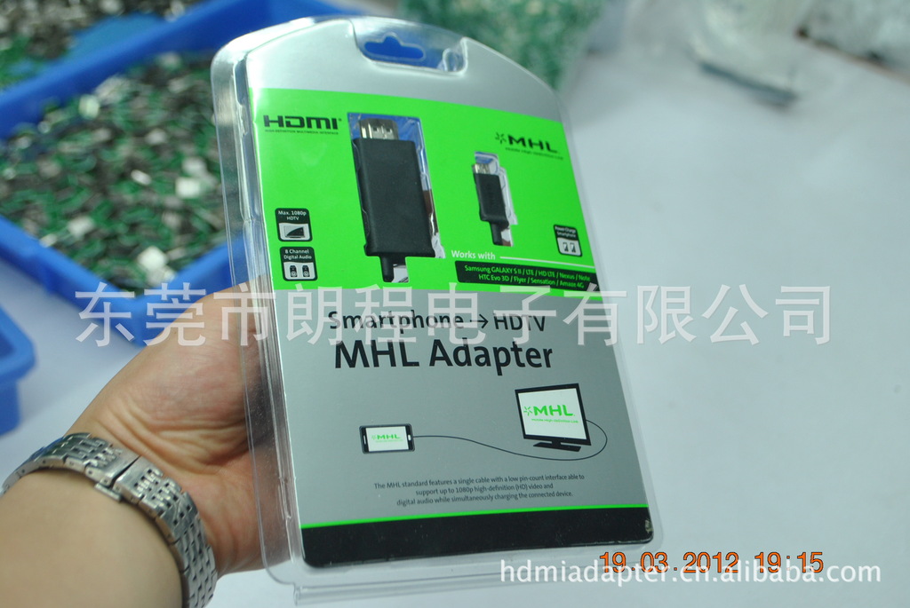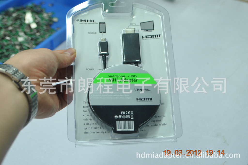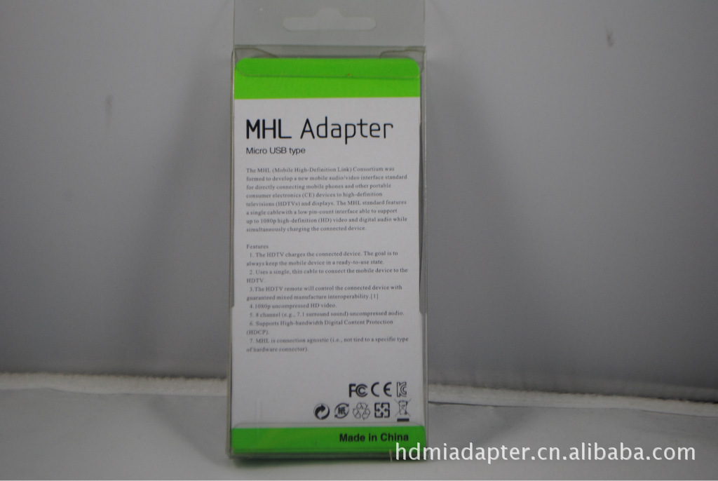 MHL转HDMI 1080P高清音视频适配器(手机高清输出)能够非常完美的把手机或平板电脑上的显示内容接入到高清电视或高清显示器,让人们在更大的屏幕上观看图片,视频或幻灯片,并且完全不损伤高清的效果,是一种非常好的把智能手机的内容与高清电视相结合的手段。对于消费者而言,随着便携设备特别是以手机为代表的智能化、大容量发展方向,不仅作为摄像机、相机使用甚至U盘都被其替代,其中的DV短片、照片、网络视频、电影、学习资料等等应有尽有。但局限于屏幕过小以及音效等方面的原因,与家人、朋友、同事分享快乐的时不能尽人意。MHL设备的面市让你的梦想成为现实。它不仅能支持高达1080P/60Hz的全格式高清画质输出,而且其音频最高支持到192KHz兼容最新标准的7.1声道LPCM(线性脉冲编码调制)环绕声和压缩音频。一个小巧玲珑的MHL适配器+一条HDMI高清信号传输线要你的家庭生活充满乐趣。