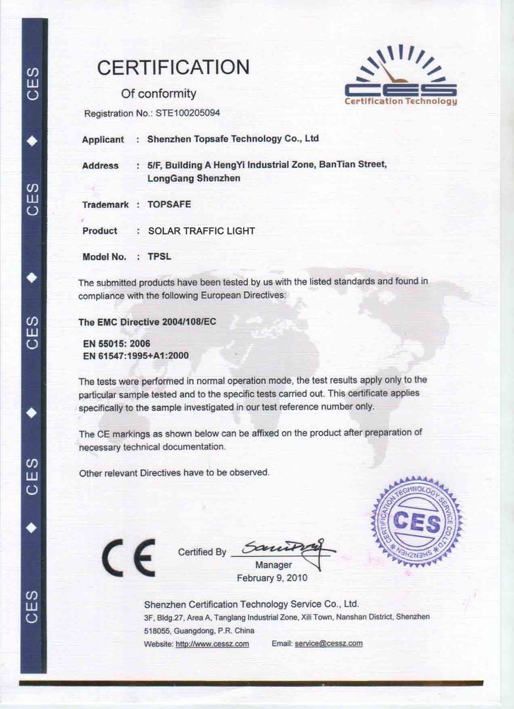 太阳能黄闪灯证书:
