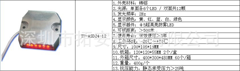 深圳市拓安科技专业生产隧道有源轮廓标,所有模组均为自己开发研发,内加欢迎广大客户来咨询:温小姐:1350159578 qq:1579038999