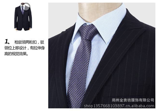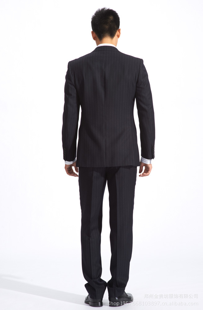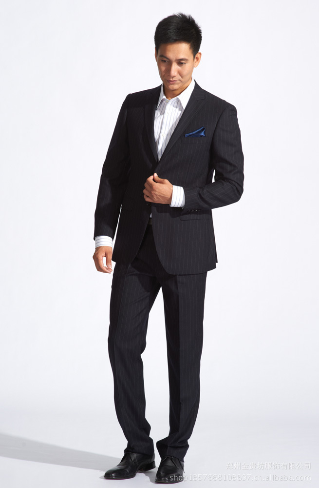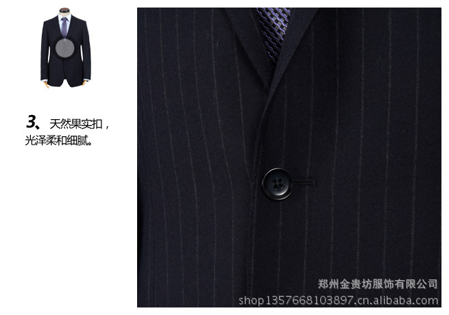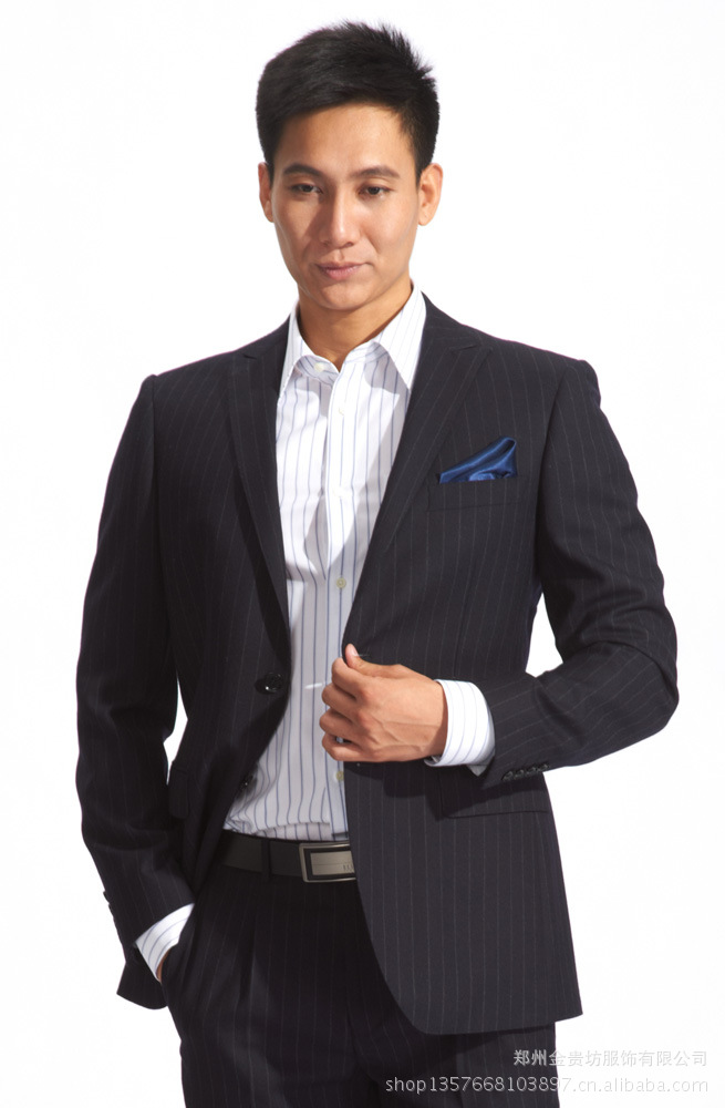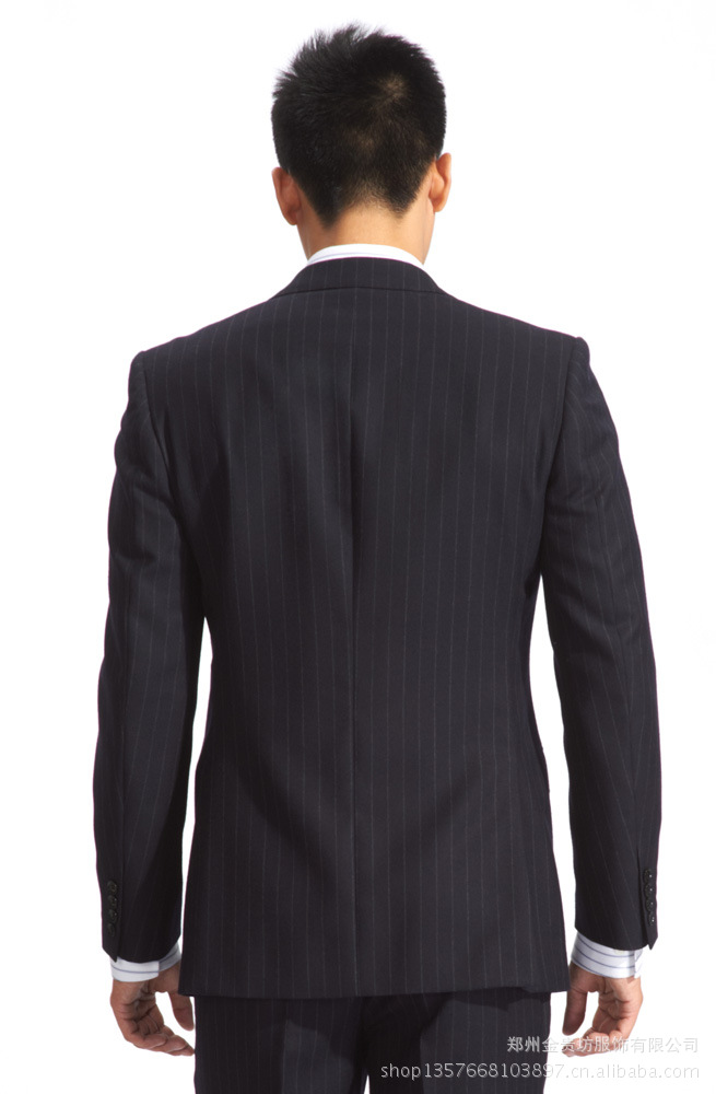 羊毛混纺深藏蓝条纹商务西装上衣 商务西装西服 男式西服
