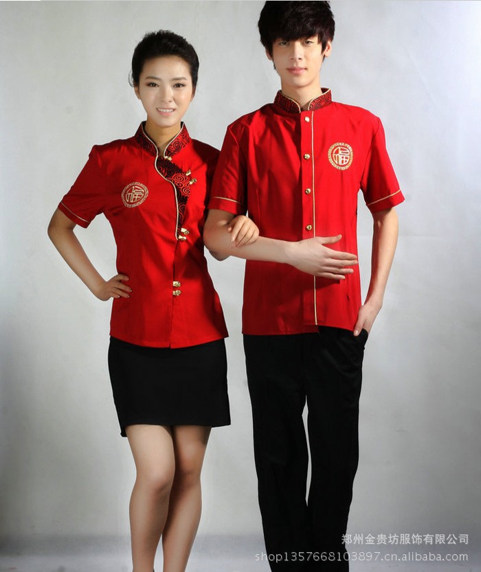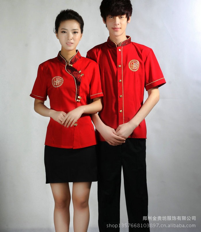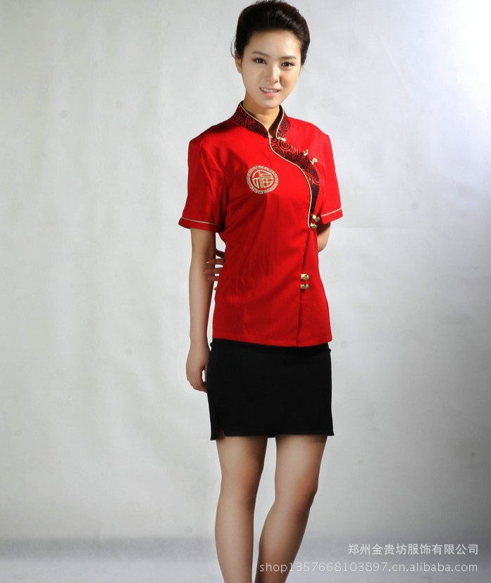 酒店桑拿服 短袖服务员 工作制服 饭店服务员服装爆款定做