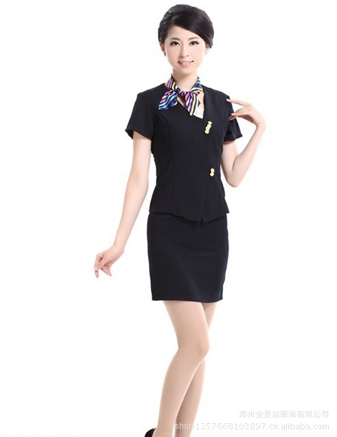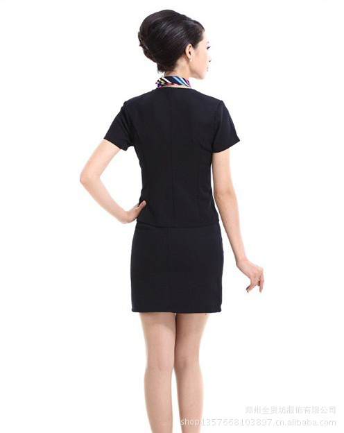 专业厂家量身定做酒店空姐时尚修身短袖棉料套装酒类促销服