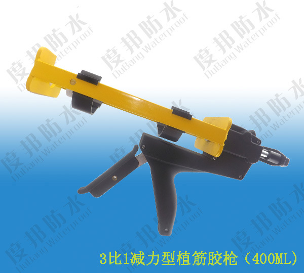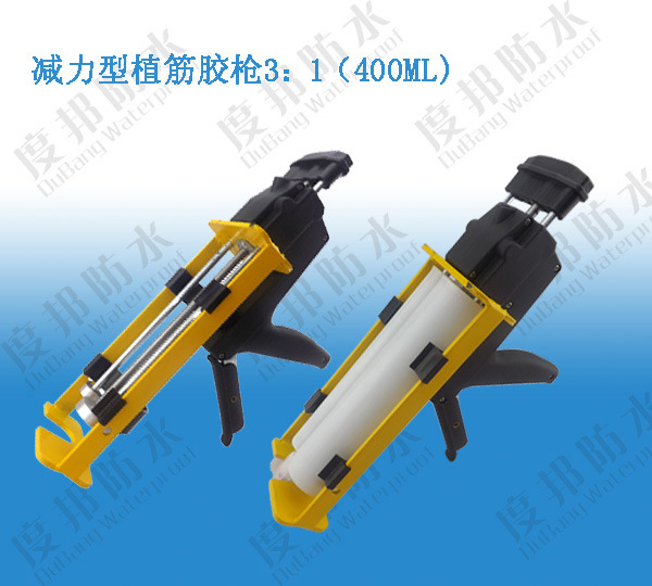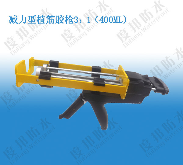 度邦注射式减力型植筋胶枪的枪体采用国际先进ABS复合材料制成:枪的压力推进系统是引进的德国技术,打胶的时候手上的压力轻,容易打出胶,一般只用其他胶枪1/5的力气就能打出胶,而且能连续打出上百支注射式植筋胶,从而增加了施工的效率性,而且操作方便,施工安全,可以重复使用,让您买的放心,用的称心(另有多种型号)。
