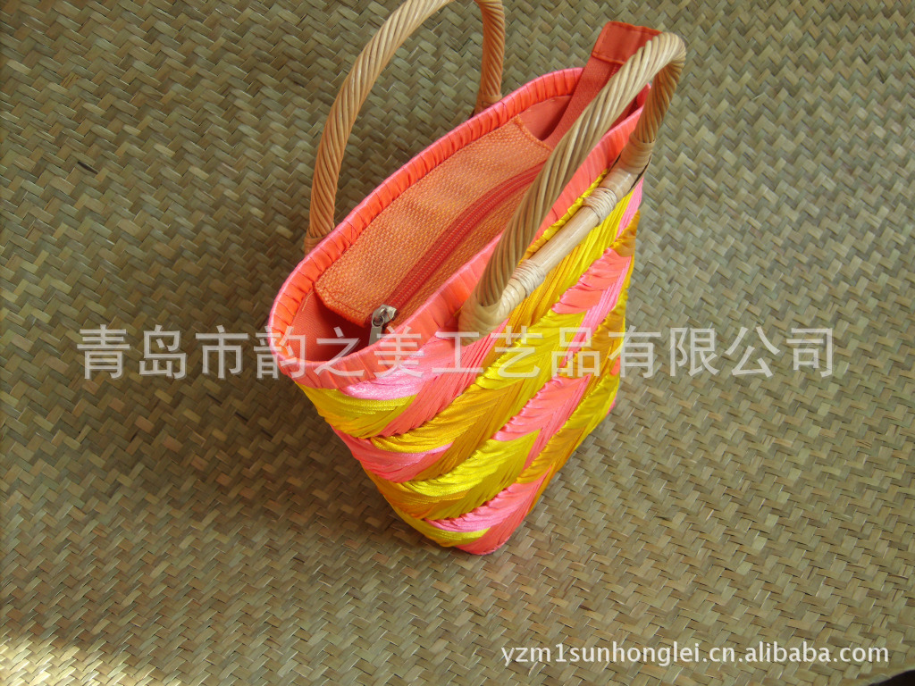 草编包保养使用说明: 1.草编包因为材质和手工缝制的工艺,所以不能负重太多,以不超过1公斤为宜,必要时您可以将负重部位用针线或者渔线自行加固一下,会起到良好的效果。 2.原色的草编包是没有经过染色的,所以不会存在掉色的问题,花色的草编包是经过高温蒸汽染色,在遇到水或者长时间于某一固定部位摩擦,请注意掉色,正常使用不必担心掉色问题。 3.草编包脏了可以用吸尘器或者软毛刷,清除草隙中的灰尘,内衬脏了手巧的美眉可以拆下清洗,然后用渔线缝上即可。草编包用的很久了,深度清洗可以用水冲洗,不能浸泡,冲洗最好在短时间内完成,并且及时彻底晾干。 4.草编包应避免长时间阳光曝晒,强烈的日光曝晒会造成草纤维色素氧化,褪色,变脆。长时间不用,请注意防潮,防虫 运费说明 快递:1.江浙沪北京天津山东省内,满10KG,2.5元/KG. 2.全国大部分地区,满10KG,8元/KG. 3.量大建议走物流或铁路.