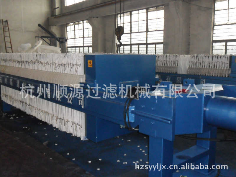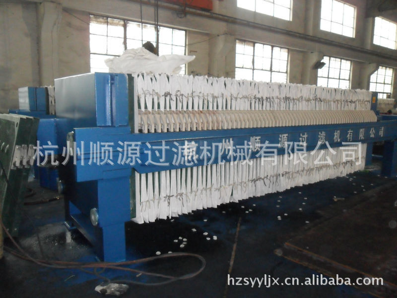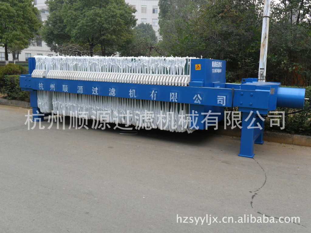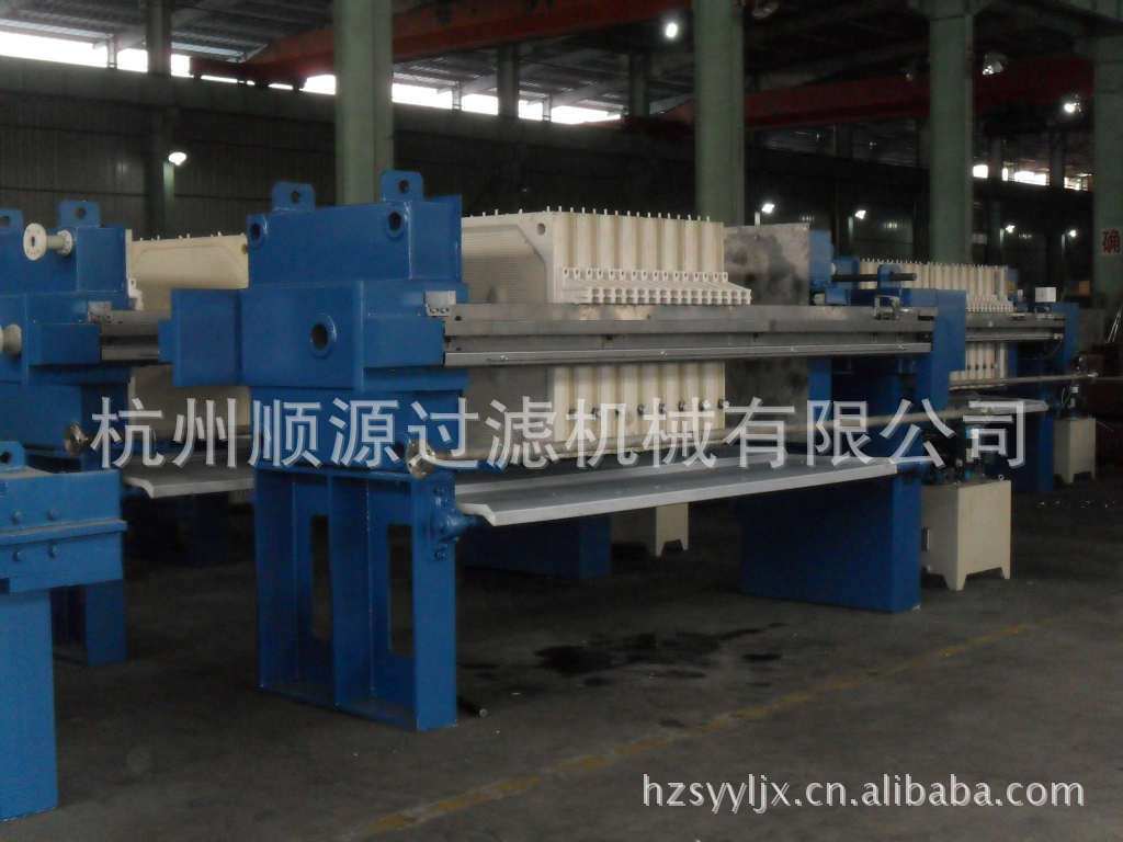 杭州顺源过滤机械有限公司是一家具有自主设计开发生产制造的专业压滤机生产厂家:公司生产产品并吸收了国内外优秀同行厂家的产品优点、加工设备齐全、技术工艺先进、实力雄厚、产品质量优良的固液分离机械专业研发制造的公司。我公司生产的主导产品—防腐型压滤机、设计合理、造型美观、通用性强、取材讲究、坚固耐用、品种多、规格全。产品分为:手动、电动液压机械保压、电动液压自动保压、自动拉板、程控控制等。增强聚丙烯厢式压滤机、板框式压滤机、PP隔膜压滤机、带式压滤机和带式浓缩脱水一体压滤机等。压滤机液压有机、电、液一体式和机、电、液分体式、其中压滤机滤板采用增强聚丙烯滤板、其过滤面采用点状圆锥凸台设计,一次模压成型,过滤面积大,滤速快,过滤周期短,极大地提高了工作效益和经济效益。公司可根据客户需要,设计制作各种特殊性能的压滤机,配置各种聚丙烯托盘和溜槽。为了适应市场需求,公司努力提高产品档次,积极研究耐高温、耐高腐蚀、耐高压、高自动化和大过滤面积压滤机:公司先后开发生产了滤板尺寸从310mm至2000mm,过滤面积从0.6m²至1190m²各式压滤机。1、增强聚丙烯滤板化学性能稳定,抗腐蚀性强,耐酸、碱、盐的腐蚀,无毒、无味,自重轻,强度高,操作省力。2、金属滤板精铸成型,耐高温、高压、经久耐用。3、为降低滤饼的含水率,还生产橡胶隔膜和PP隔膜的压滤机。