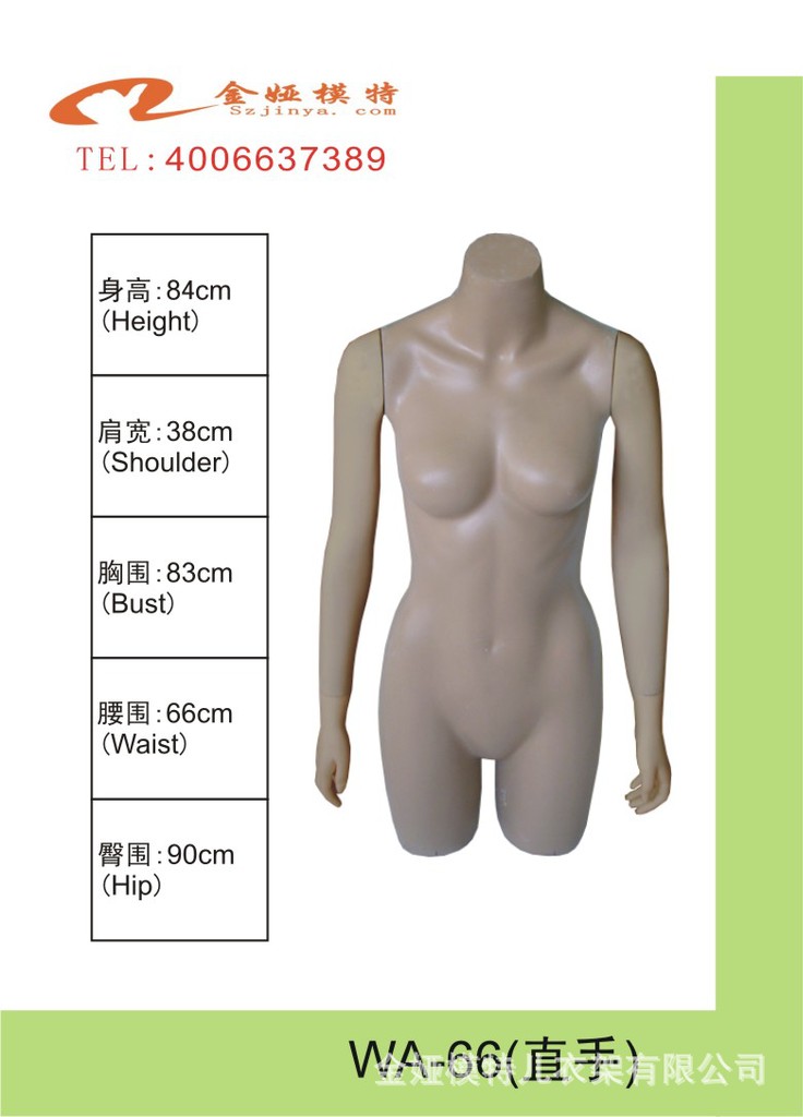 我国服装生产和出口十多年来一直位居世界第一,塑料时装服装模特道具也已经100%的国产化,为什么中国的服装店内还在使用假洋鬼子作服装服装模特道具呢?西方人尤其是女性身体整体线条起伏较大,胸部、臀部突出,肩略宽,体型相对高大。换句话说,西方人是天生的衣裳架子,时装服装模特道具当然要按照西方人的身材来做。这是中国时装店内使用西方人服装模特道具的生理解释。