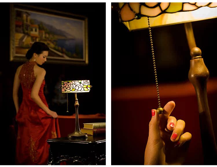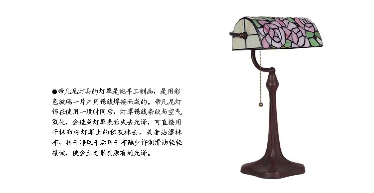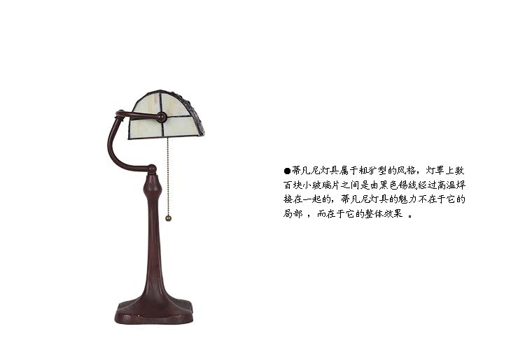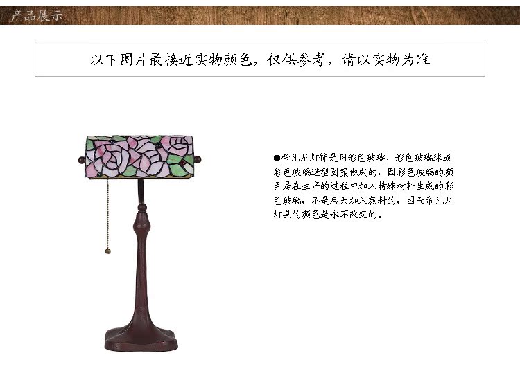 【灯罩材质】:TIFFANY彩色玻璃灯罩采用蒂凡尼传统纯手工锡焊工艺制作
