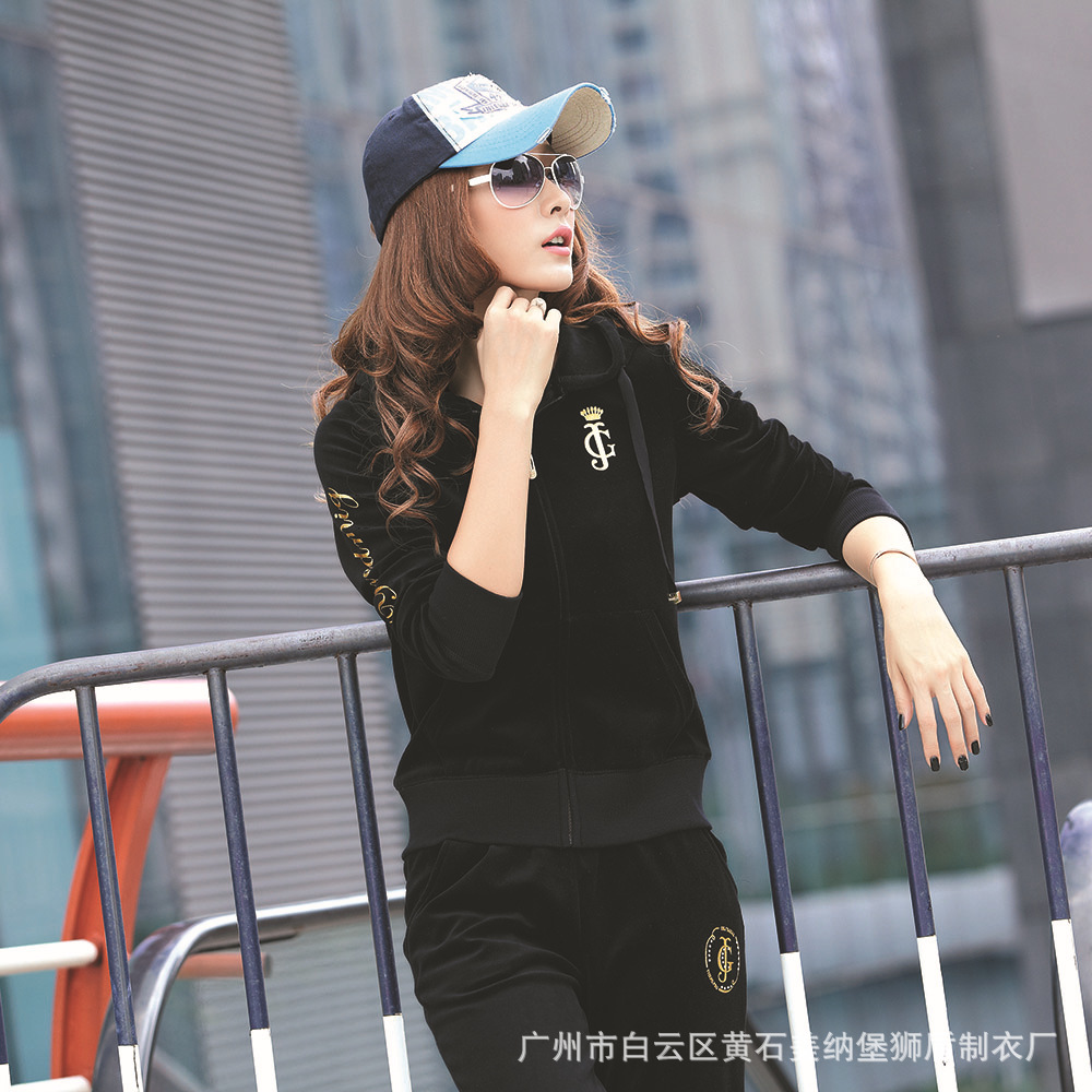 2012鸿星米兰休闲运动开衫拉链绣花连帽秋季天鹅绒韩版女装外套装