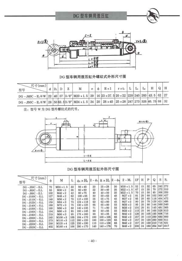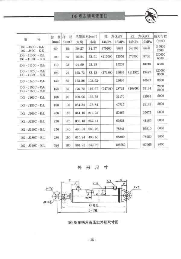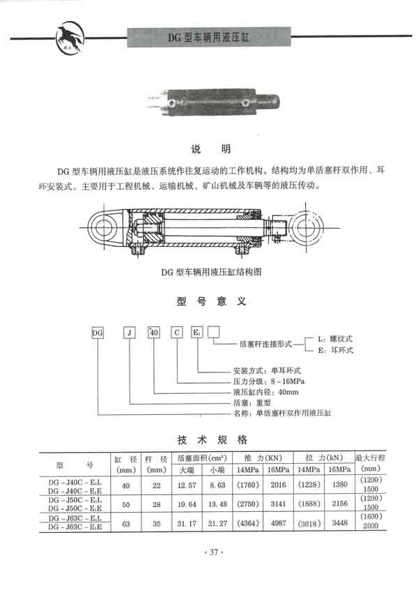 车辆液压缸是双作用、单活塞杆、耳环安装型液压缸,主要用于车辆运输机械及矿山机械等行业。DG系列车辆液压油缸本系列液压油缸为双作用单活塞杆、尾部单耳环安装型液压油缸。主要用于工程机械、运输机械、矿山机械及其它车辆等的液压传动。工作压力为8~16MPa,缸径40~320mm。CD/CG250、350系列重载液压油缸 本系列液压油缸是由14种缸径,分别按二种速比组成28种规格的单活塞双作用差动油缸。另外缸头法兰、中间轴销和底座安装三种还可做成双活塞杆双作用等速油缸,再加上有无缓冲与上述28种规格组成384个品种。其安装型式和尺寸符合德国钢厂和ISO3320标准,特别适合于环境恶劣、重载的工作状态。广泛应用于钢铁、铸造、锻造及机械制造等工业部门。工作条件:工作压力Mpa:25、35 工作介质:矿物油磷酸油和水一乙二醇 工作温度℃:-30~+100 介质粘度cts:2.8-380 速度m/s:0.5(采用特殊密封可达到15)HSG系列工程液压油缸 本系列液压油缸具有结构简单、工作可靠、装拆方便、易于维修,可带缓冲装置及安装型式多样等特点。适用于工程机械、起重、运输机械及矿山机械的液压传动。工作压力16MPa、缸径40~250mm。Y-HG1系列冶金设备液压油缸 本系列液压油缸外型及安装尺寸除轴向底座安装型式均符合ISO6020国际标准。JB2162-77系列方形端盖重型冶金设备液压油缸 本系列液压油缸主要适用于冶金设备、重型机械、亦可用于其它行业。工作压力≤16MPa,缸径50~250mm,环境温度-20℃~80℃。W70/140L-系列轻型拉杆液压油缸 本系列液压油缸结构紧凑简单,比同等压力等级液压缸体积小,工作压力7MPa、14MPa、缸径40~250mm,工作温度~10℃~80℃。C/D25系列高压重型液压油缸 *可加扁螺母或垫圈作知量调节。YZG型木业机械压机专用柱塞油缸 YZG型为木业机械压机专用柱塞油缸,适用于三夹板、刨花板、中纤板、复合地板、竹胶板、木板成型等压机上使用,工作压力一般为26MPa,柱塞直径63~520mm,有效行程0~5000m。JB/ZQ4395-86系列重型冶金设备液压油缸 本系列液压油缸工作压力≤25MPa,缸径40~320mm,13种缸径,8种安装型式,工作温度-20℃~+100℃。